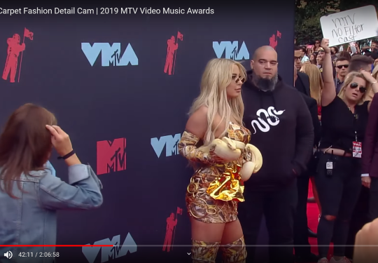 Snakes have made an appearance before at the V.M.A.’s (most notably Britney PSeras tur with her real-life boa in ). This year both H.E.R. (Gabriella Wilson’s professional acronym that stands ‘Having Everything Revealed’) and YouTube star Tana Mongeau both attended the V.M.A.’s with a live snake as their slithery +1.