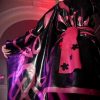 “Hanhaba” style latex obi belt, measuring 10 feet long and decorated with a variety of applique in the colors of your choice. This obi is the perfect compliment to a latex kimono and may be tied using traditional techniques.