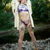 Intricately appliqued thong featuring an origami crane and cherry blossoms. Pictured here in Pearlsheen Purple and Pink.