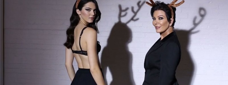 No one is going to label Kris or Kendall Jenner world class dancers, but dance they try to, in sexy black Philip Plein pieces, for LOVE Magazine’s Advent Calendar. Kendall cavorts in black bra, stockings and high waist panties (see our basic one here) while her mom wears a black suit jacket over tights (which she adds a skirt to in another scene in the video later.) The women shimmy with antlers on their heads in one set-up but mostly they set about destroying a pink Christmas tree.